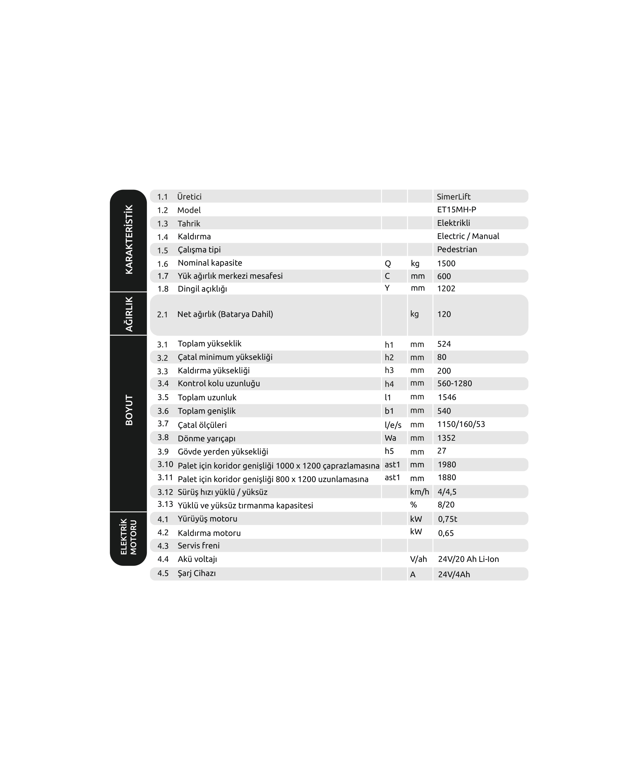 Simer ET15MH-P Elektrikli Transpalet: Yüksek Performans ve Verimlilik İçin İdeal Çözüm
